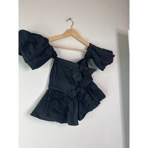 Hunter Bell Rhea Off Shoulder Balloon Sleeve Pleated Lined Bow Top Black. New with tag!