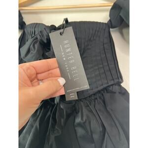 NWT Hunter Bell Rhea Off Shoulder Balloon Sleeve Pleated Lined Bow Top Black