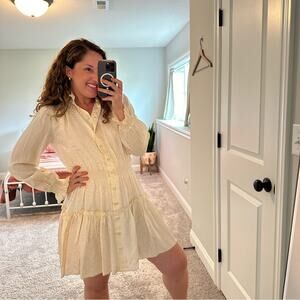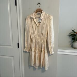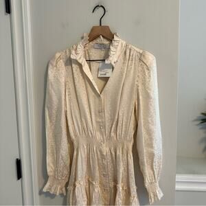 Wow, I am so in love with this stunning new with tags designer Hunter Bell Joplin silk white cream leopard cheetah subtle long sleeve button front mini dress