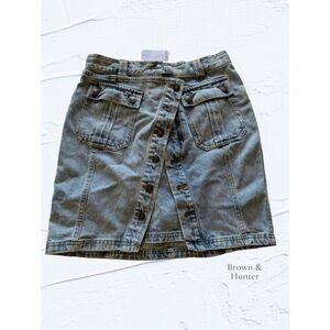 NWT Hunter & Brown Light Wash Zipper Button Asymmetrical Skirt Sz M