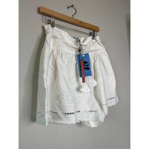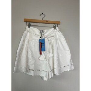 NWT Hunter Embroidery Bell Fern Floral Belt-Loops Self Belt Short White Size: 8