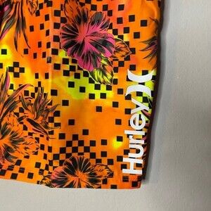 NWT Hurley Boy's Orange Floral Checkered Boardshorts Big Kids size 18 Swim