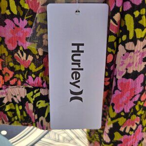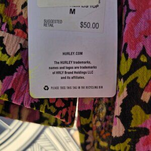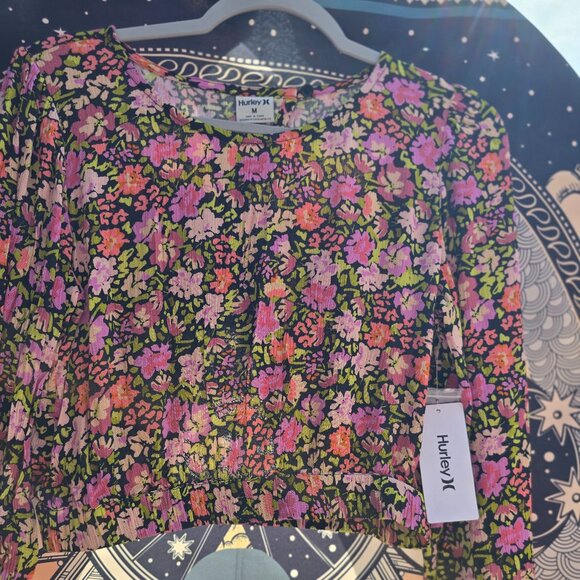 NWT Hurley Ladies Cropped Black Floral Long Sleeve Top Size M