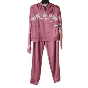 NWT Hurley Soft & Comfy women's XL, mauve hoodie lounge set. The hoodie is wide and cropped floral and logo. The pants are cuffed with elastic waistband. Both pieces have a very soft fleece interior. 100% Polyester. SKU0439