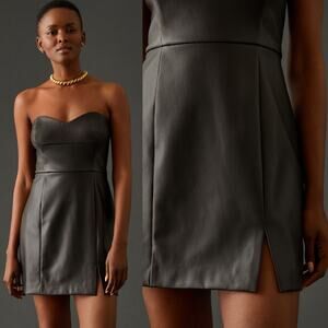 NWT Hutch Womens Faux Leather Strapless Sweetheart Mini Black Dress Size 10