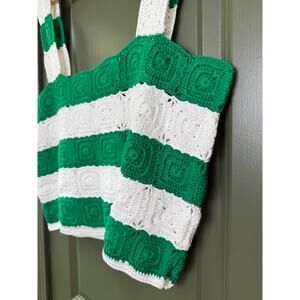 NWT Hyacinth House Green and White Crochet Cooper Boho Square Neck Crop Tank XL