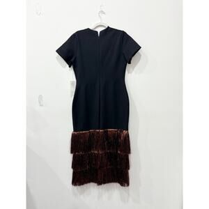 Featuring shimmering metallic fringe detailing, a flattering maxi silhouette, and a striking black and bronze colorway, this dress exudes movement, glamour, and sophistication.