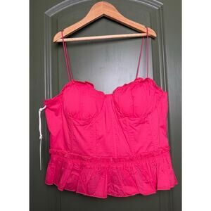 NWT Hyacinth House Watermelon Dylan Bustier Peplum Ruffle Crop Top Pink Medium
