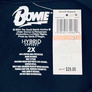 NWT Hybrid Apparel 2X Plus Size Black Trendy David Bowie Short-Sleeve T-Shirt