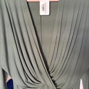 NWT Hyfve Women's Top Size Small Sage Green Draped Rayon & Spandex Trendy