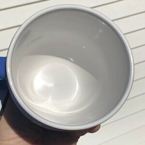 NWT "I love taking long leisurely walks down the aisles of Marshall’s" double sided blue coffee mug. Has a white interior.