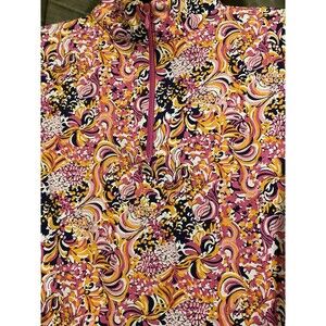 NWT IBKUL Marissa Paisley Quarter Zip Pullover Sz XS Hot Pink Floral Long Sleeve
