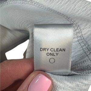 Material has a silky feel (likely a polyester blend or treated synthetic) and is labeled Dry Clean Only.