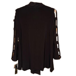 NWT IC by Connie K Women's Black Blouse medium longsleeve cut out