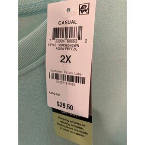 NWT ID IDEOLOGY Plus Crew Neck Sweatshirt Aqua Freeze Blue 2X