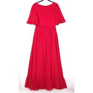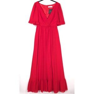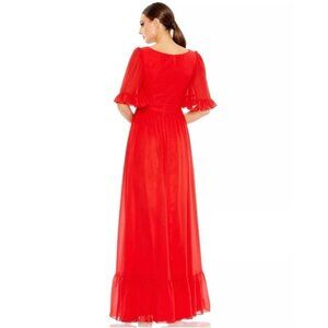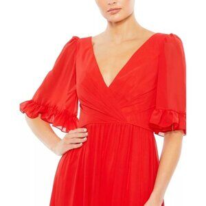 NWT IEENA MAC DUGGAL Faux Wrap Ruffle Trim A Line Gown Red Size 8 Style 55867
