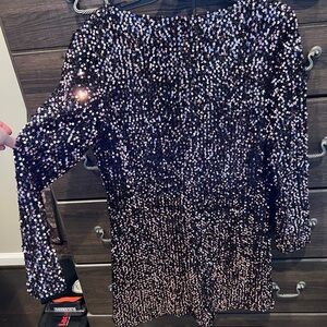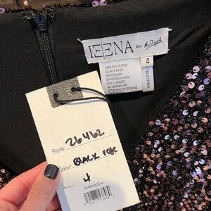 NWT IEENA Mac Duggal Sequined V Neck Long Sleeve Flowy Sample Mini Dress