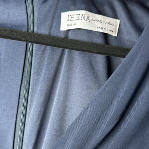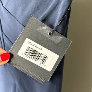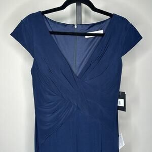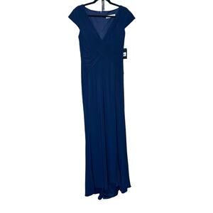 NWT IEENA for MAC DUGGAL Navy V-Neck Ruched High Slit Jersey Gown Women’s
