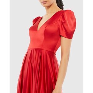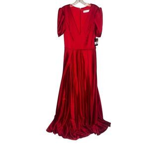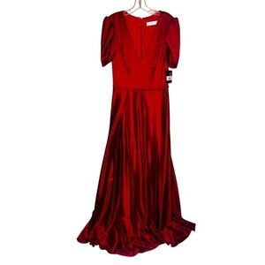 NWT IEENA for Mac Duggal Red Puff Sleeve V-Neck Satin Gown size 6