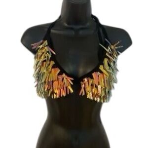 NWT IHeartRaves Iridescent Sequin Bikini Halter Top XS Rave Music Festival Party
