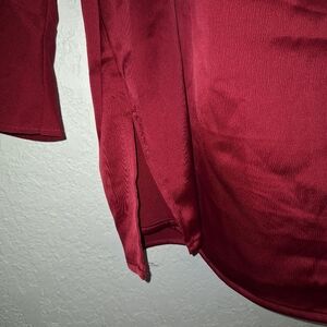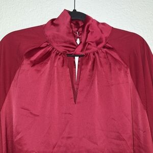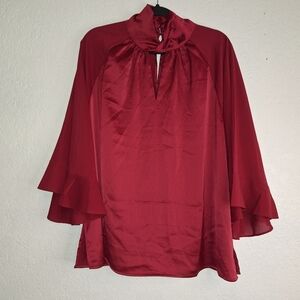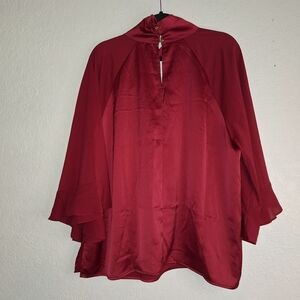 NWT IMAN Global Chic Mock Neck 3/4 Bell Sleeve Silky Top Cranberry 2X