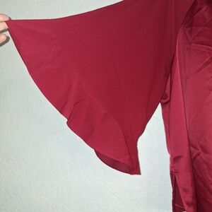 NWT IMAN Global Chic Mock Neck 3/4 Bell Sleeve Silky Top Cranberry 2X.