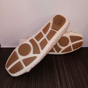 NWT IN BOX 💥 MICHAEL KORS Vanilla Fulton Studded Logo Moccasins w/Gold MK Logo