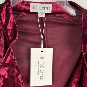 NWT IN THE STYLE | Burgundy Crushed Velvet Single Breasted Blazer | Women's 6