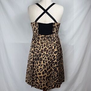 NWT INC 100% Silk, Cheetah Print Mini Dress, Empire Waist with Black Banding, Black Cross Back Straps, Black Elastic Panel in Back, Size 12, Pit to Pit = 18.5, Waist side to side = 16.5, Shoulder to Hem = 37"