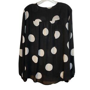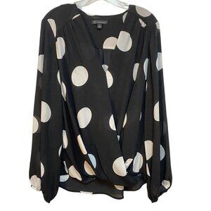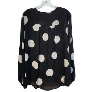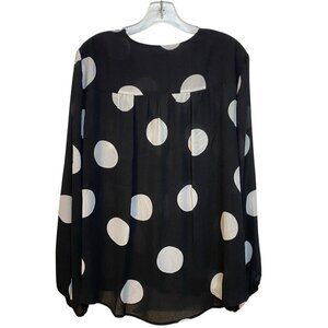 NWT INC Blouse Size XL Black & White Large Polkadot V-Neck