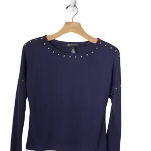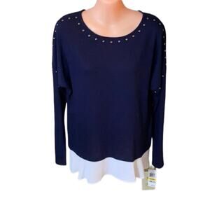 NWT INC Concepts Blue And White Studded Layer Look Top XS