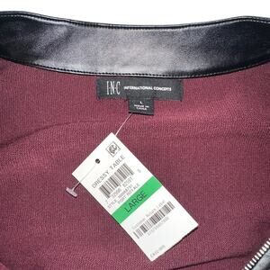 NWT INC International Concepts Men Zip Up Faux Leather Trim Burgundy Cardigan L