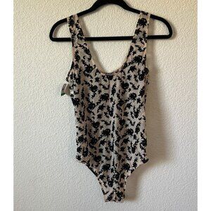 NWT| INC International Concepts Sheer Velvet Floral Bodysuit Size L
