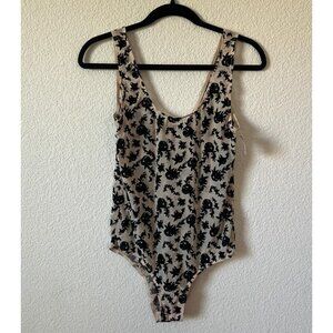 INC International Concepts Sheer Velvet Floral Bodysuit Size L