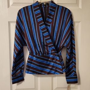 NWT INC International Concepts Sm Striped Night Out LS Wrap Top