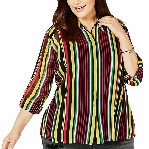 (NWT) INC International Concepts Women's Party Stripe Sheer Top Plus Size 2X