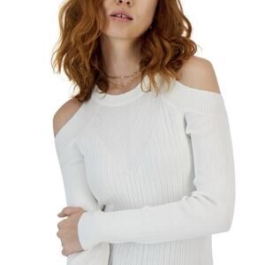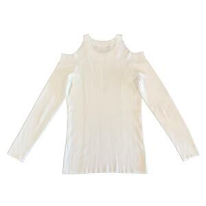 NWT INC International Concepts Women's White Ribbed Cold Shoulder Top Size Large