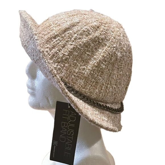 NWT INC International Concepts pale pink bucket hat gun metal chain