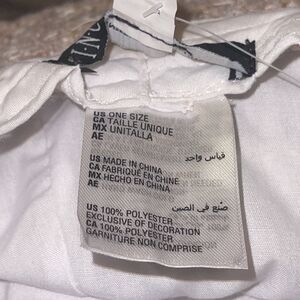 One size. 100% polyester. Adjustable fit band.