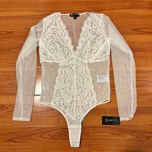 NWT INC Intimates Mesh Cheeky Lace Bodysuit White Festival Fairy Medium 01