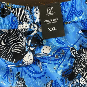 NWT INC Mens Blue Zebra Quick Dry Swim Trunks Elastic Waist Fun Print Beach XXL
