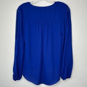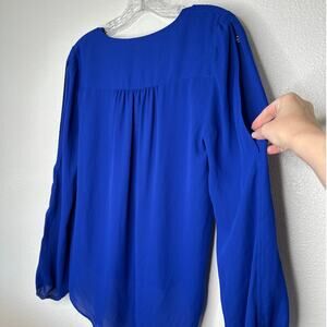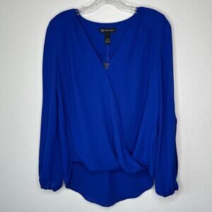 NWT INC Royal Blue VNeck Faux Wrap Long Sleeve High-Low Blouse XS