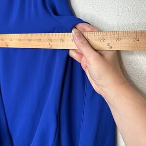 INC International Concepts Royal Blue V-Neck Faux Wrap Long Sleeve High-Low Gathered Back Blouse
