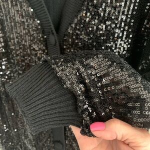 NWT INC Sequined Black Long Boyfriend Cardigan Large Get your “Shimmer On”