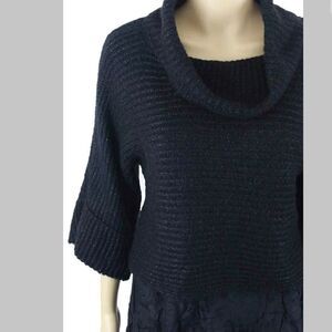 NWT INC Sz. M & L Black 3/4 Trumpet-Sleeve Cropped Cowl Neck Sweater New w Tags!