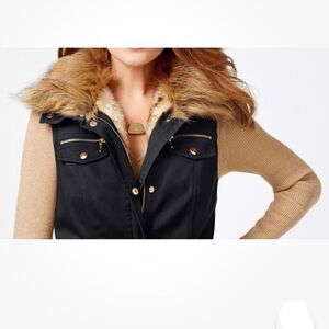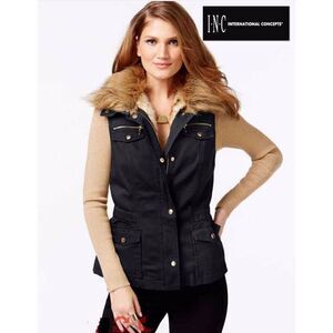 NWT INC Vintage Gorgeous Sz L INC Convertible Fur Anorak Vest Black Tan 4 in one