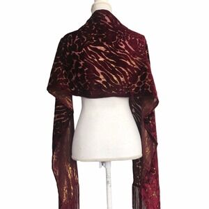 NWT INC Wine Gold Metallic Sheer Velvet Giraffe Animal Tassel Scarf Wrap #MQ2