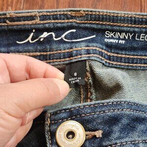 NWT INC Women’s Skinny Leg Curvy Fit Denim Jeans Shiny Stripe Size 8