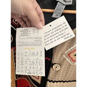 NWT INDIGO MOON Patchwork Applique Jacket 2X Button Artsy Hippie Boho Chic Aztec