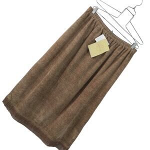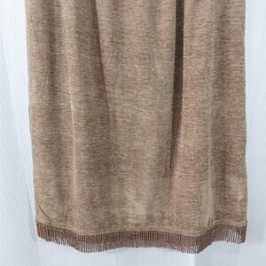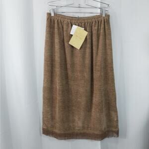 From Indigo Moon and QVC, this fabulous knit skirt steals the show! In a marled amber/tan with a touch of shimmery gold metallic, it features a golden fringe at the hemline! Elastic waist, fully lined in brown, perfect for the season! Size 1X, ***Brand NEW! New WITH Tags, and Guaranteed Superb by Lily @HauteClub!*